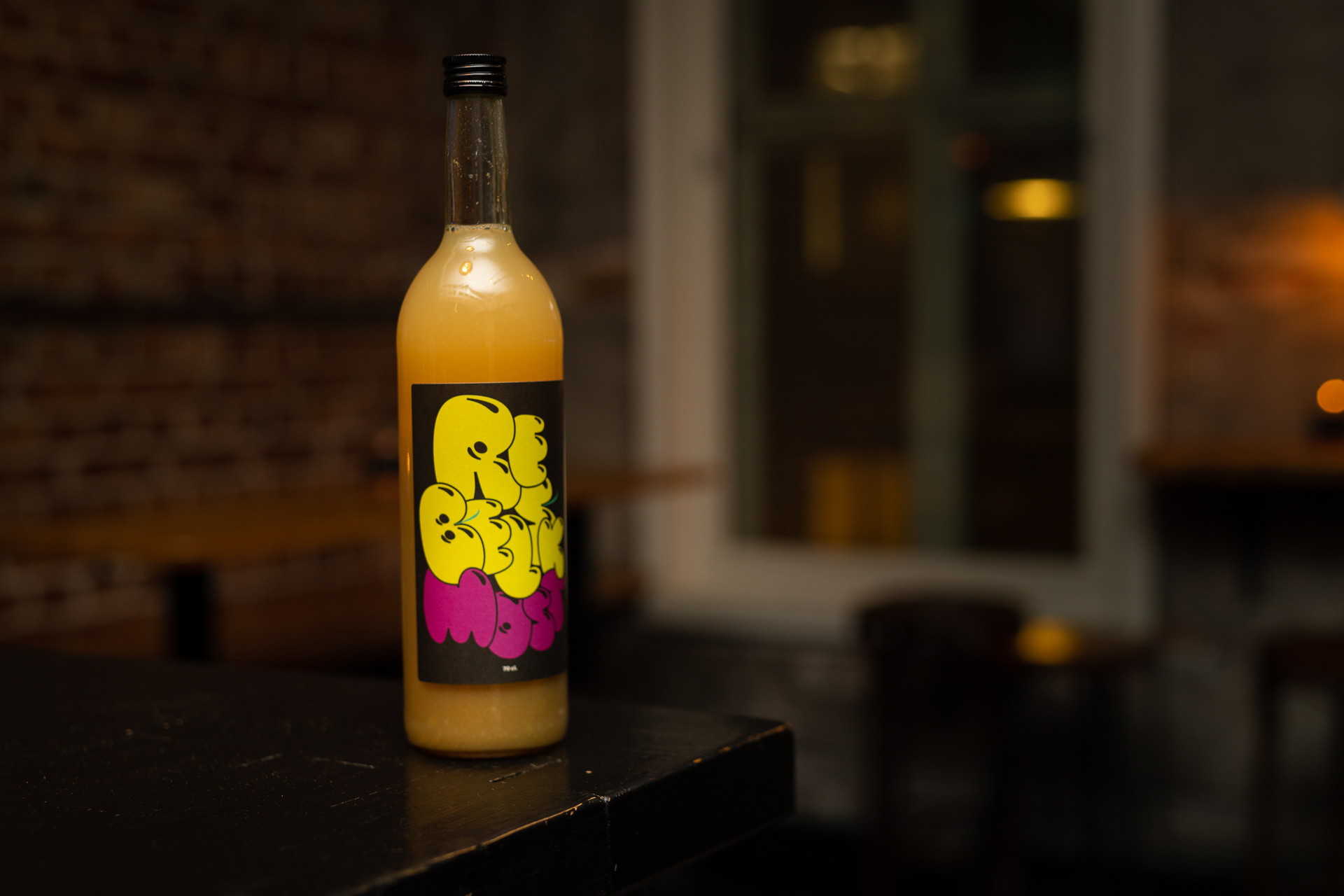 - Egendesignet eplemostflaske. Vi etablerte et samarbeid med frivilligorganisasjonen Líf laga hvor de lagde eplemost og en av våre egne medlemmer designet etiketten.