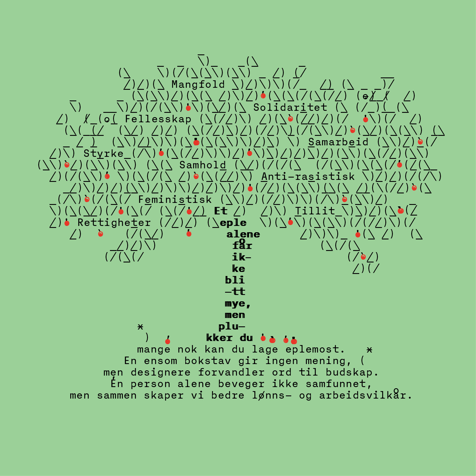 Utdrag fra den digitale markedsføringskampanjen i fjor. Designer: Frode Konstantin Helland, prisbelønt skriftdesigner og medlem av Fellesforbundet avd. 850, Oslo grafiske fagforening.