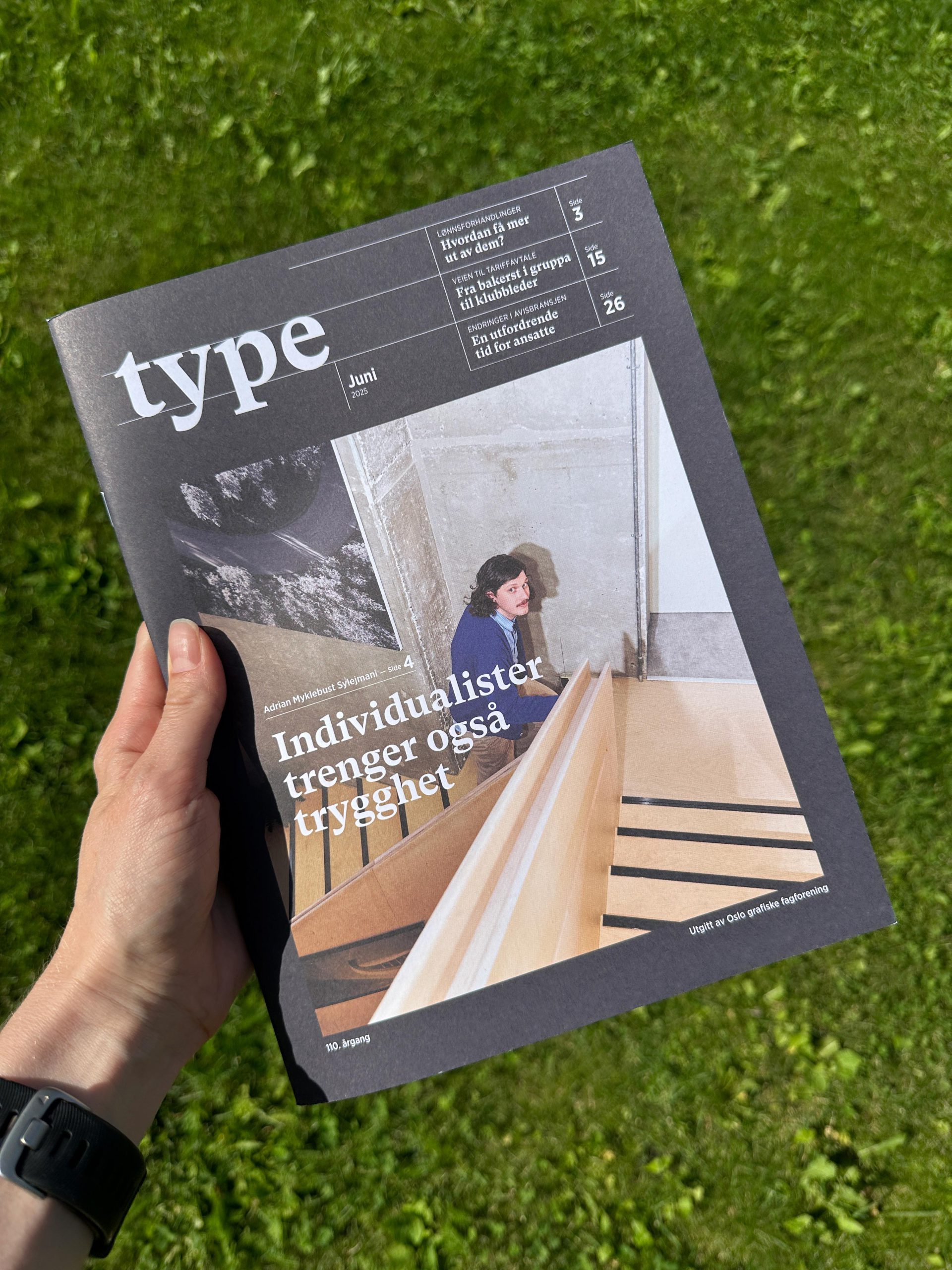 Med eplemostdesignet kommer mange muligheter. I det nydesignede magasinet vårt, TYPE, ble det skrevet en hovedsak om Adrian Myklebust Sylejmani, eplemost-designet og designyrket. Han holdt også innlegg om designprosessen for årets eplemost for Oslo grafiske fagforenings halvårsmøte.